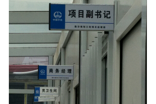 中國中鐵臨汾規(guī)劃三街項目經(jīng)理部門牌設(shè)計制作安裝